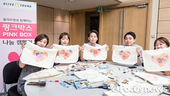 올리브영은 지난 22일 서울 중구 충무로에 위치한 CJ인재원에서 임직원 봉사단이 DIY면생리대와 일반 생리대를 에코백에 넣은 핑크박스를 직접 제작하고, 이를 서울시립청소녀건강센터에 전달했다고 24일 밝혔다.