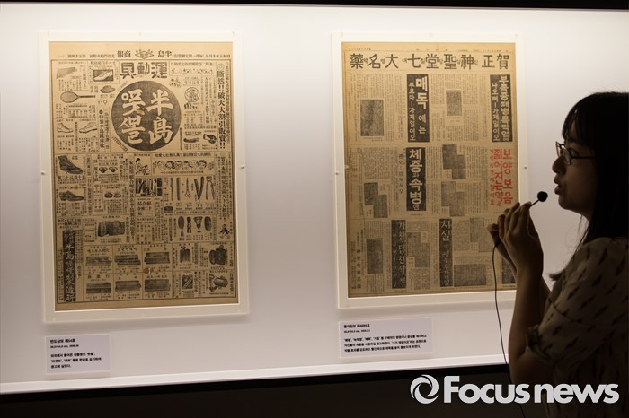 (서울=포커스뉴스) 28일 오후 서울 용산구 국립한글박물관에서 열린 기획특별전 '광고 언어의 힘' 언론 간담회에서 참석자들이 다양한 광고를 살펴보고 있다. 개화기부터 현재까지 광고의 130여년 역사를 우리말과 우리글의 관점에서 풀어낸 이 기획특별전은 7월 28일부터 11월 27일까지 열린다.