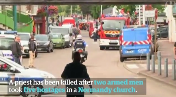 야당인 공화당은 마뉘엘 발스 총리와 베르나르 카즈뇌브 내무장관에 대해 최근 잇따른 테러에 대한 책임을 지고 사임할 것을 요구하고 있다. 공화당 로랑 보키에 부대표는 현지 언론과의 인터뷰에서 "이들은 테러 예방에 필요한 조치를 하지 않았다. 우리는 새 정부가 필요하다"고 사임을 촉구했다.26일(현지시간) 아침 프랑스 북부 루앙시 인근의 성당에 괴한 2명이 침입, 인질극을 벌여 신부 1명이 살해됐다. <사진출처=가디언>