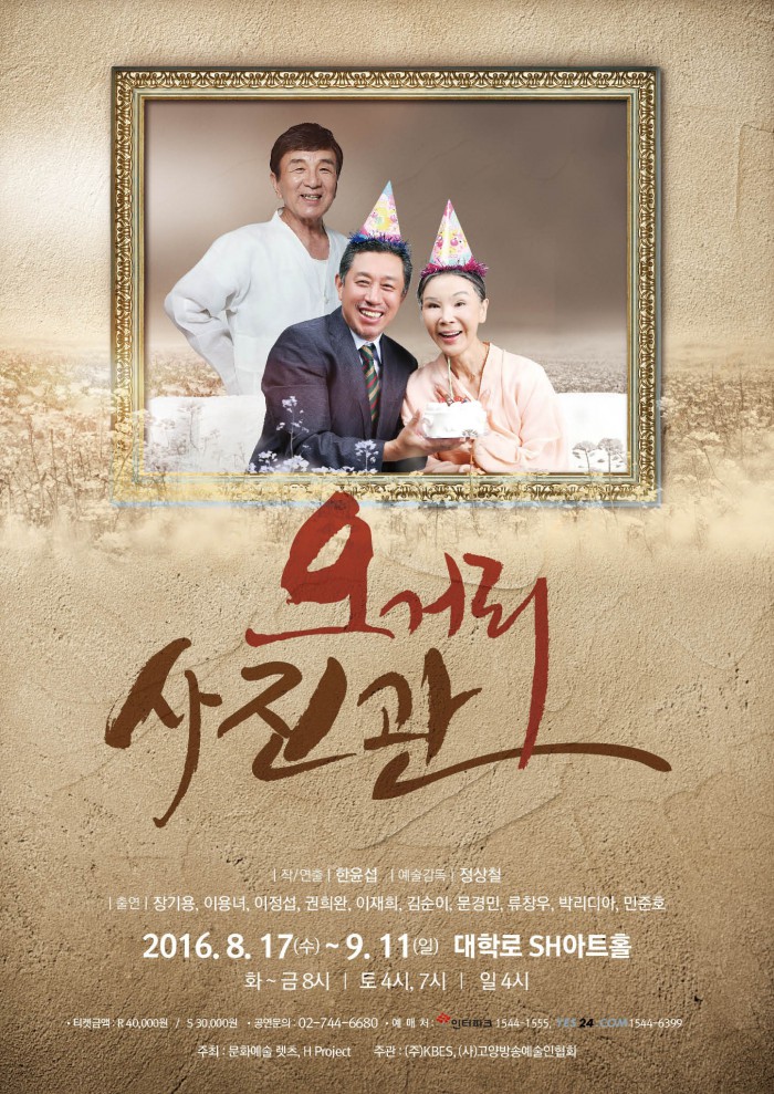 원로 배우들의 참여를 통해 대학로에 새로운 바람을 불러올 연극 '오거리 사진관'은 8월17일부터 9월11일까지 대학로 SH아트홀에서 공연될 예정이다. 인터파크, yes24에서 예매 가능하다.연극 '오거리 사진관' 포스터.<사진제공=연극 오거리 사진관>