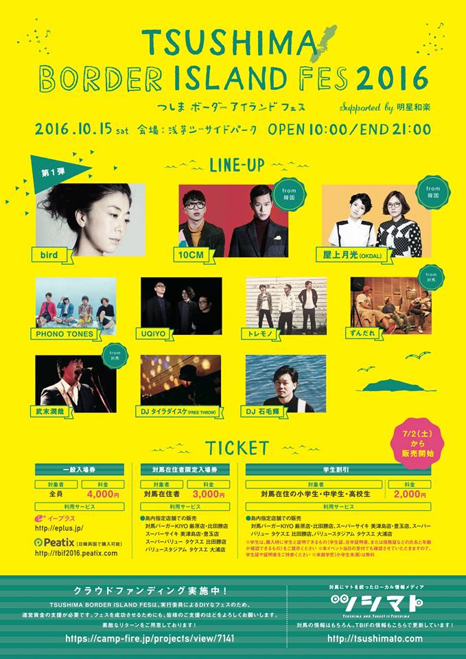 (서울=포커스뉴스) 한국과 일본의 아티스트들이 함께 모이는 '쓰시마 보더 아일랜드 페스(TSUSHIMA BORDER ISLAND FES) 2016'이 오는 10월15일 쓰시마에서 개최된다.