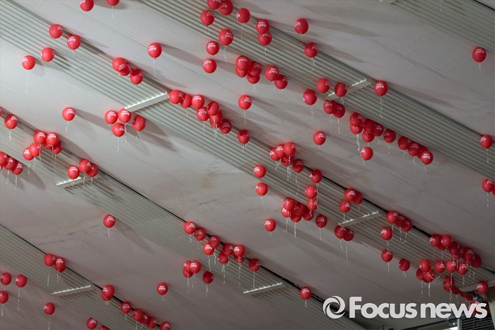 (서울=포커스뉴스) 9일 오후 서울 송파구 잠실실내체육관에서 열린 제4차 새누리당 전당대회에서 이주영 당 대표 후보 지지자들이 들고 있던 풍선이 천장에 닿아있다.