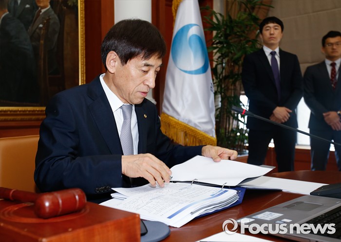 (서울=포커스뉴스) 11일 오전 서울 중구 한국은행에서 열린 제15차 금융통화위원회에 참석한 이주열 한국은행 총재가 회의 시작 전 자료를 검토하고 있다.