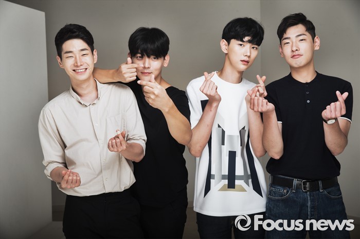 (서울=포커스뉴스) 11일 오후 서울 서초구 포커스뉴스 사옥에서 케이플러스 모델 정의성(왼쪽부터), 박보성, 이현준, 방주호가 인터뷰를 하고 있다.